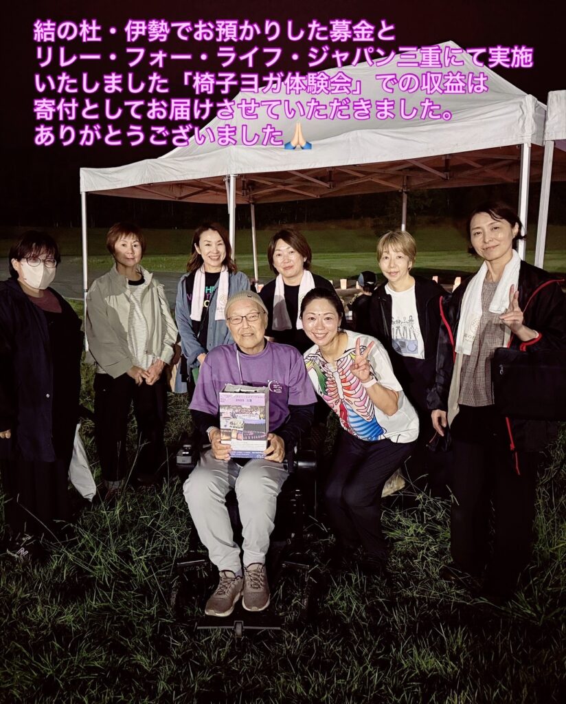 このたび、結の杜・伊勢においてお預かりした募金ならびに、リレー・フォー・ライフ・ジャパン三重にて実施いたしました「椅子ヨガ体験会」での収益につきましては