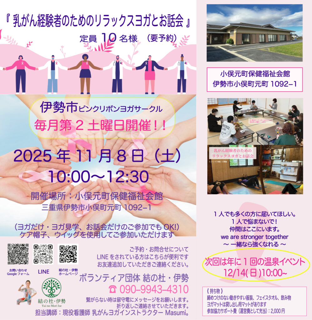 11月の乳がん経験者のためのリラックスヨガとお話会のご案内です。