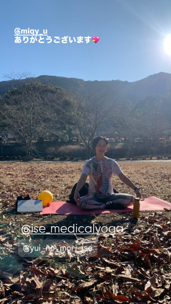 その太陽の光を全身に浴びながら、ゆったりと呼吸を整え、メディカルヨガで身体をほぐしていきました。